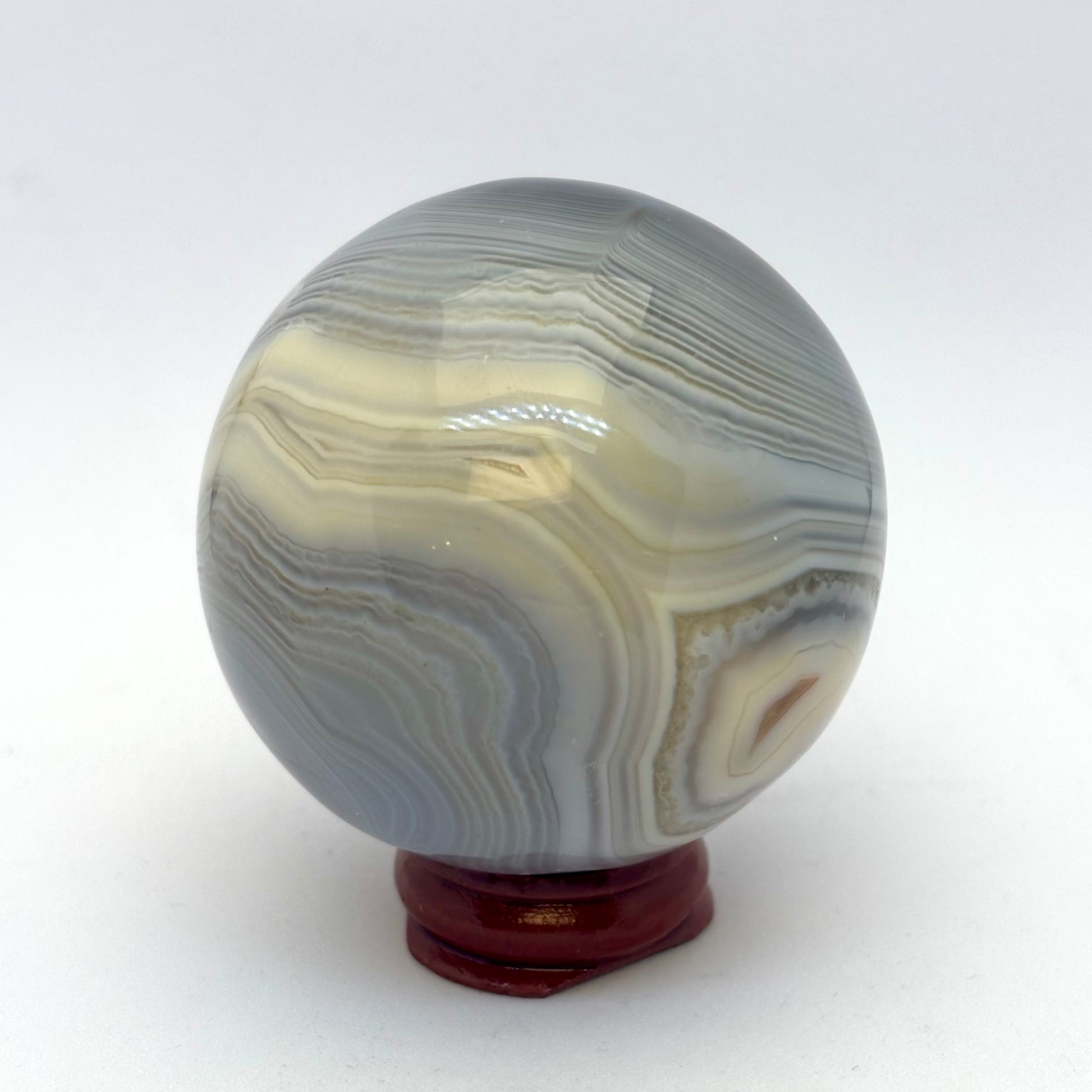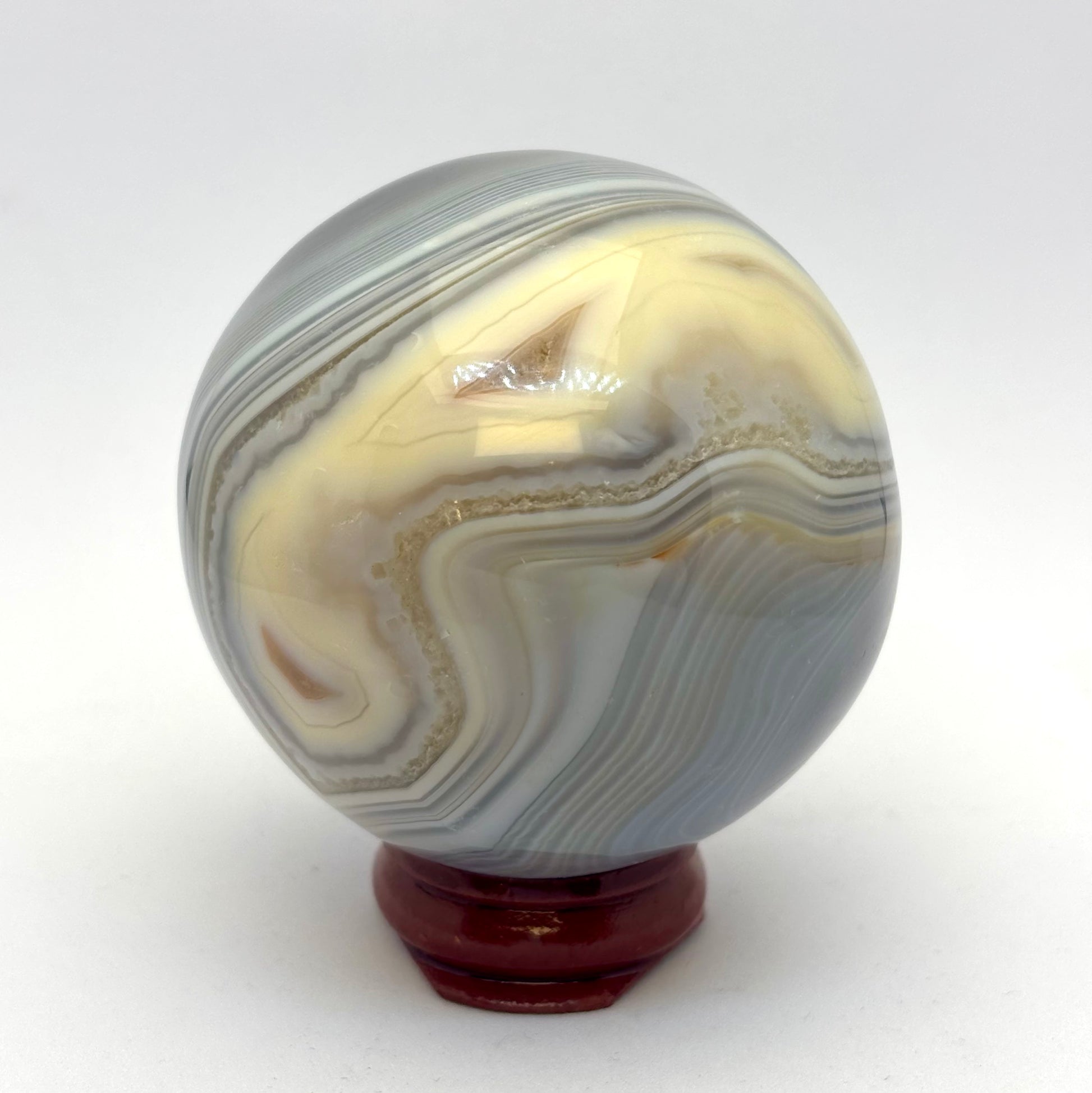 Smuk blid kugle af lys grå blå agat med flotte striber.