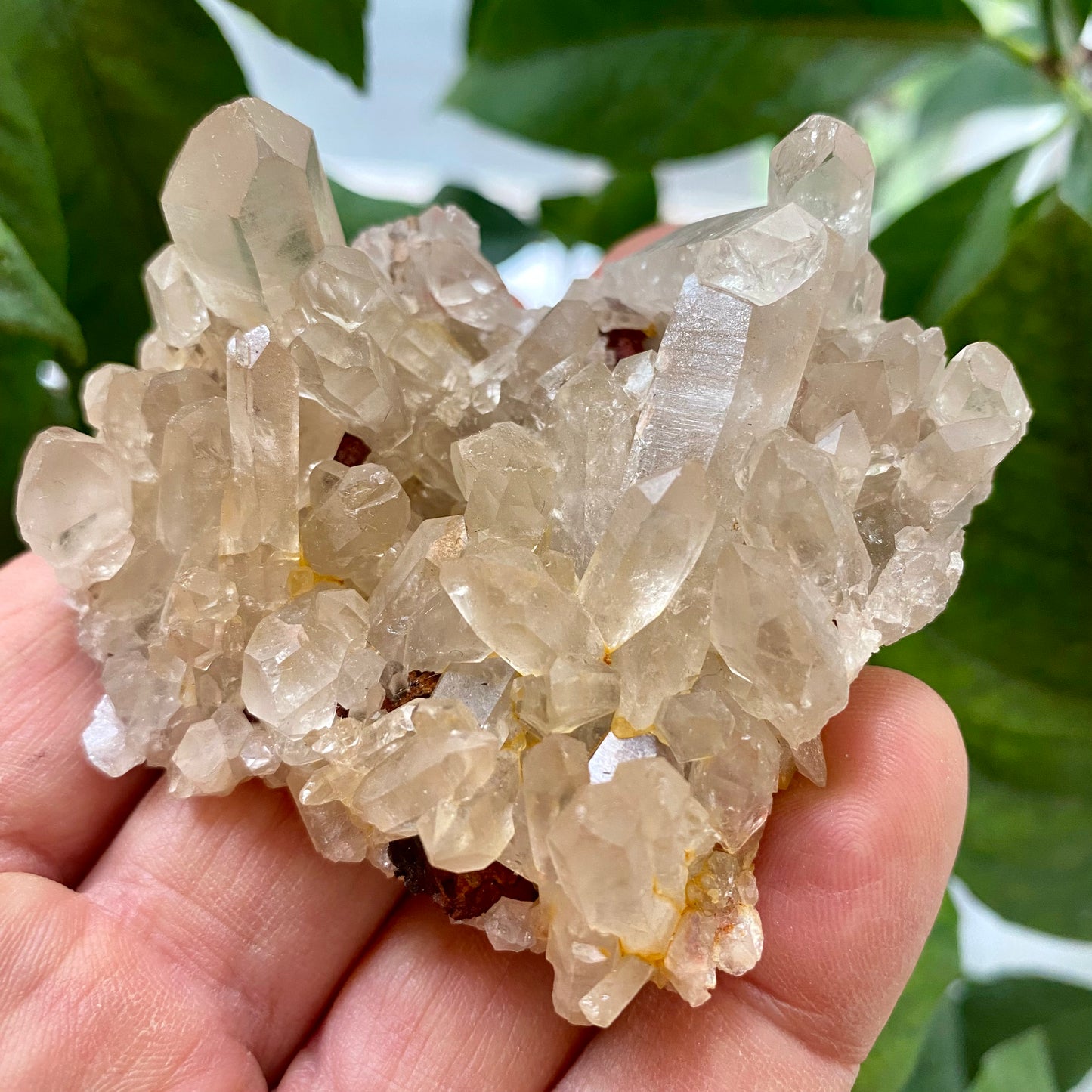 En smuk, helt naturlig kvartsklynge der stråler sin pragt i alle retninger.