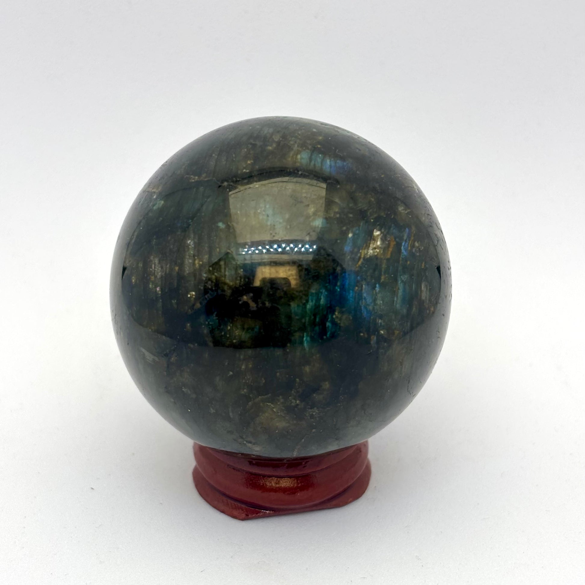 Her er en smukt, Labradorit kugle. Fin mængde af labradorits unikke metalliske regnbue genskin.