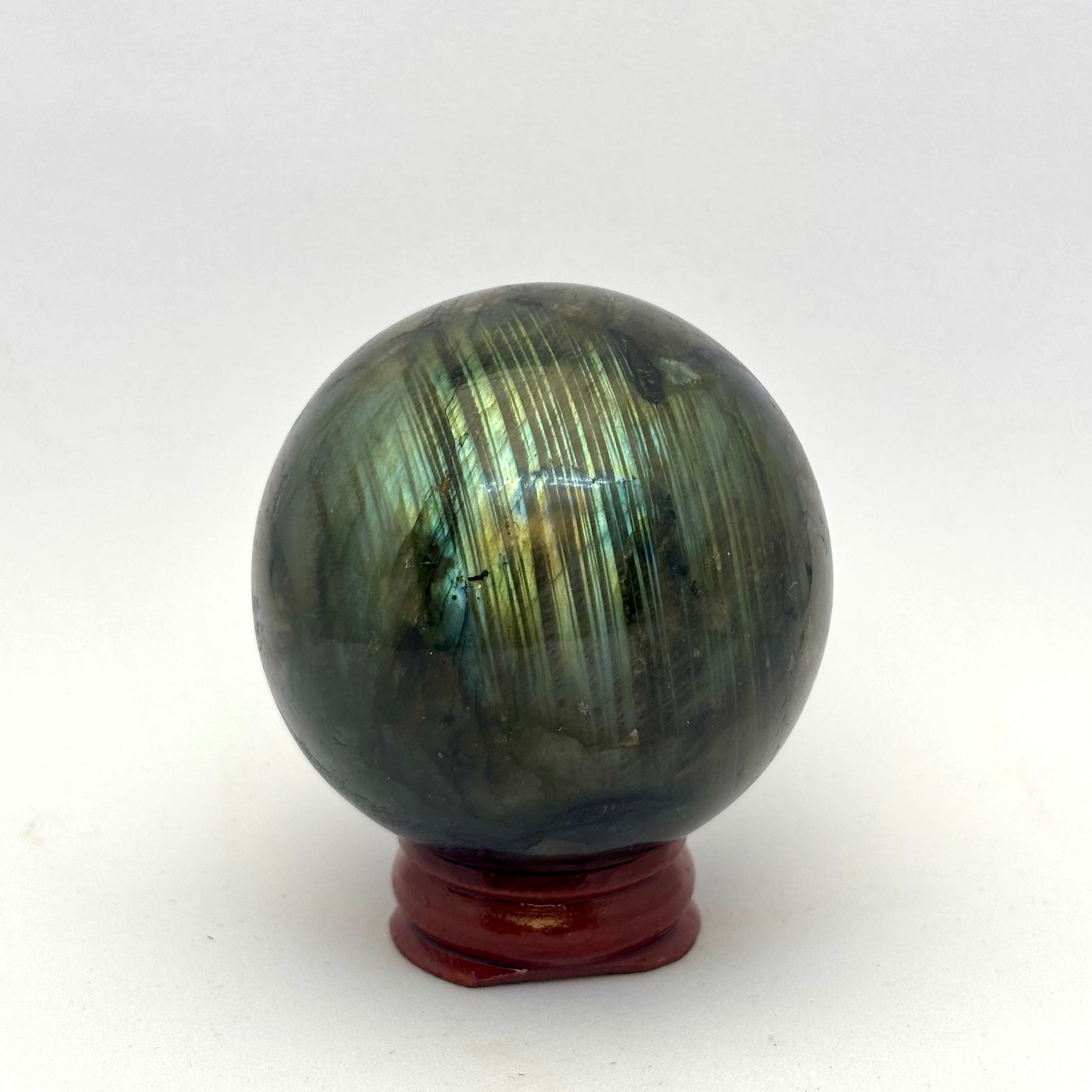 Her er en smukt, Labradorit kugle. Flot mængde af labradorits unikke metalliske regnbue genskin.