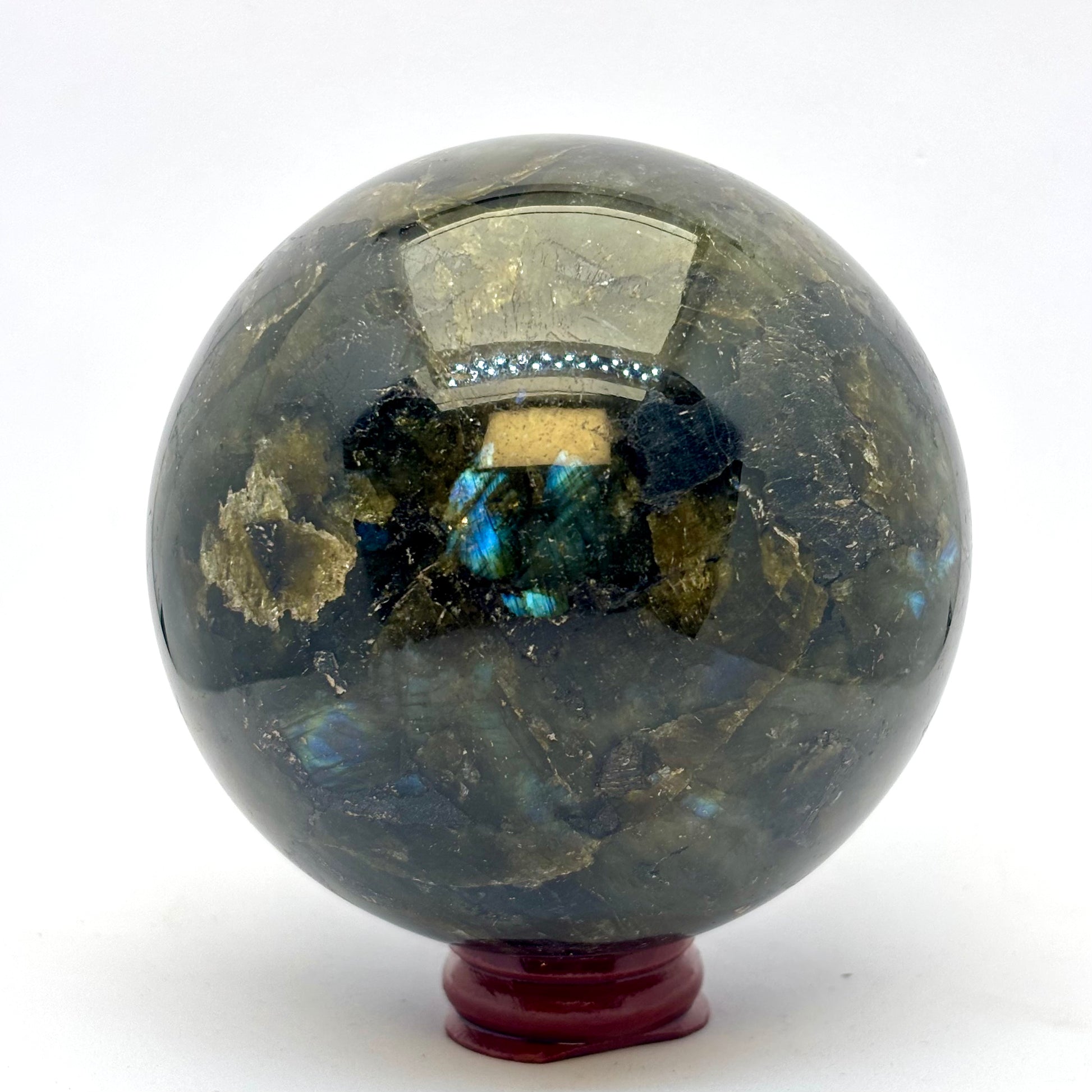 Her er en smukt, Labradorit kugle. Flot mængde af labradorits unikke metalliske regnbue genskin.