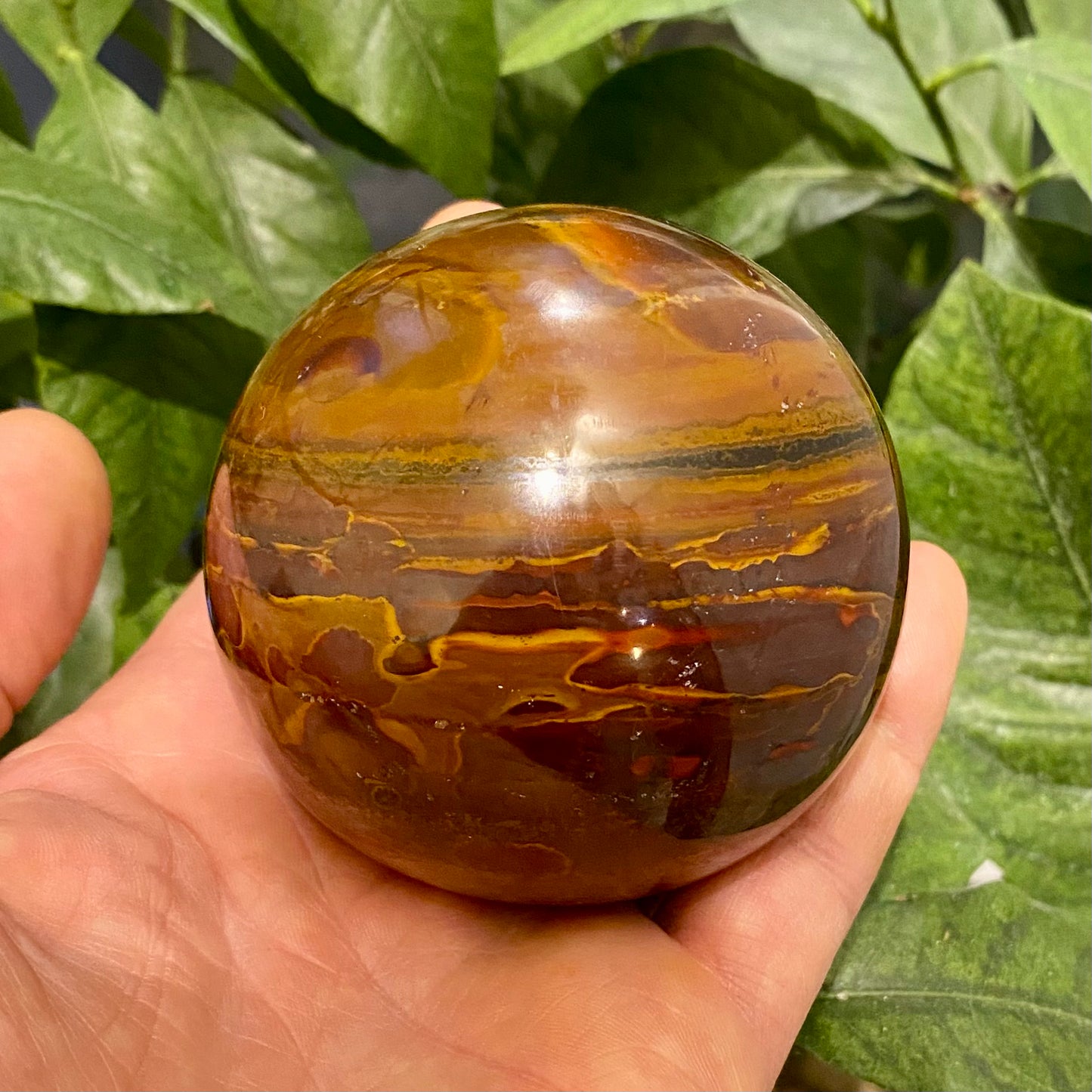 Her er en luminar jaspis kugle. Majestætisk og tung som en planet