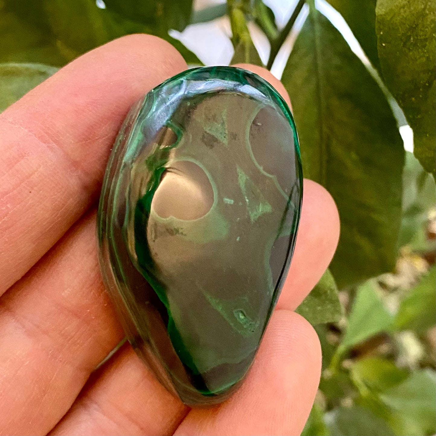 Celestial er den lille unikke krystalbutik i Valby, København. Du kan købe denne Malakit poleret i butikken også. Krystalbutikken ligger kun 150 meter fra Valby station eller 2 minutters gang fra Spinderiet, hvor der er gode parkeringsmuligheder med 2 timers gratis parkering.