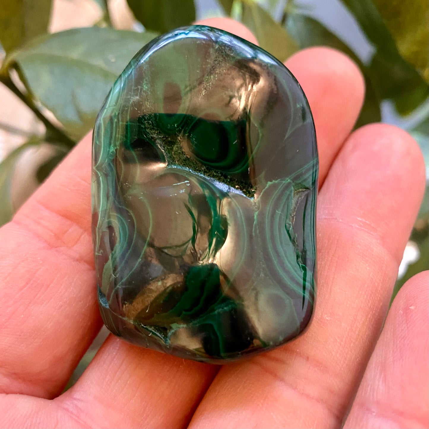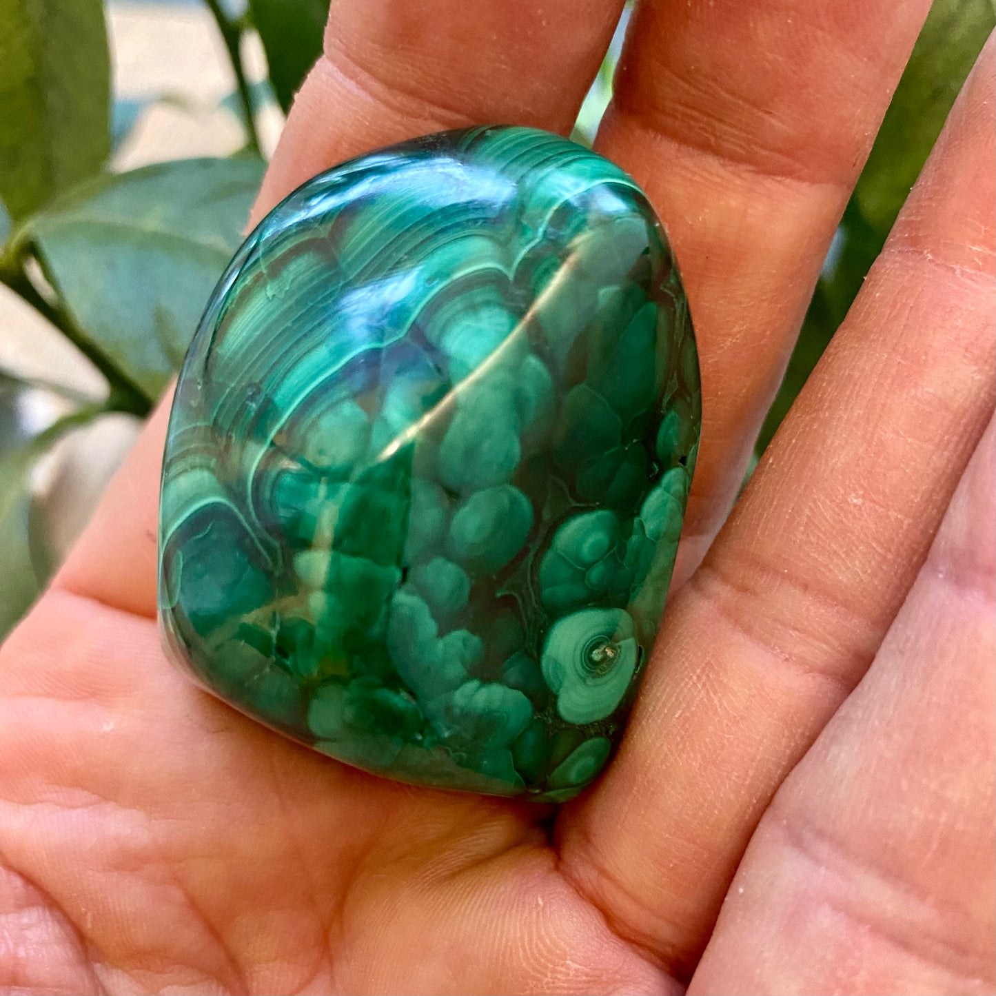 Celestial er den lille unikke krystalbutik i Valby, København. Du kan købe denne Malakit poleret i butikken også. Krystalbutikken ligger kun 150 meter fra Valby station eller 2 minutters gang fra Spinderiet, hvor der er gode parkeringsmuligheder med 2 timers gratis parkering.