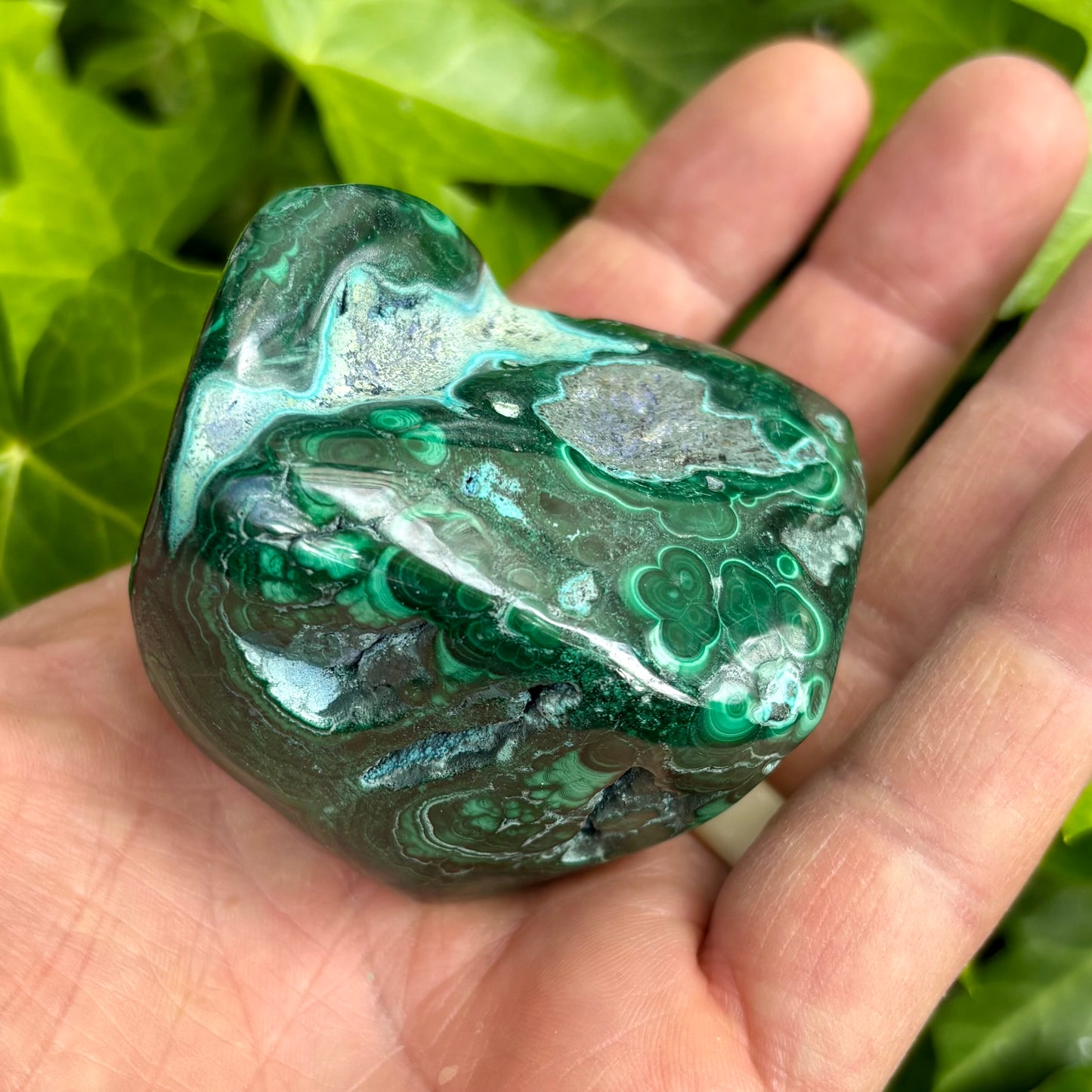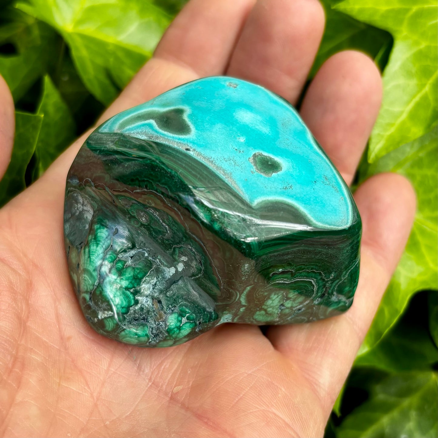 Malakolla er en kombination af Malakit og chrysocolla. Så smuk og ligger rigtig fint i hånden.