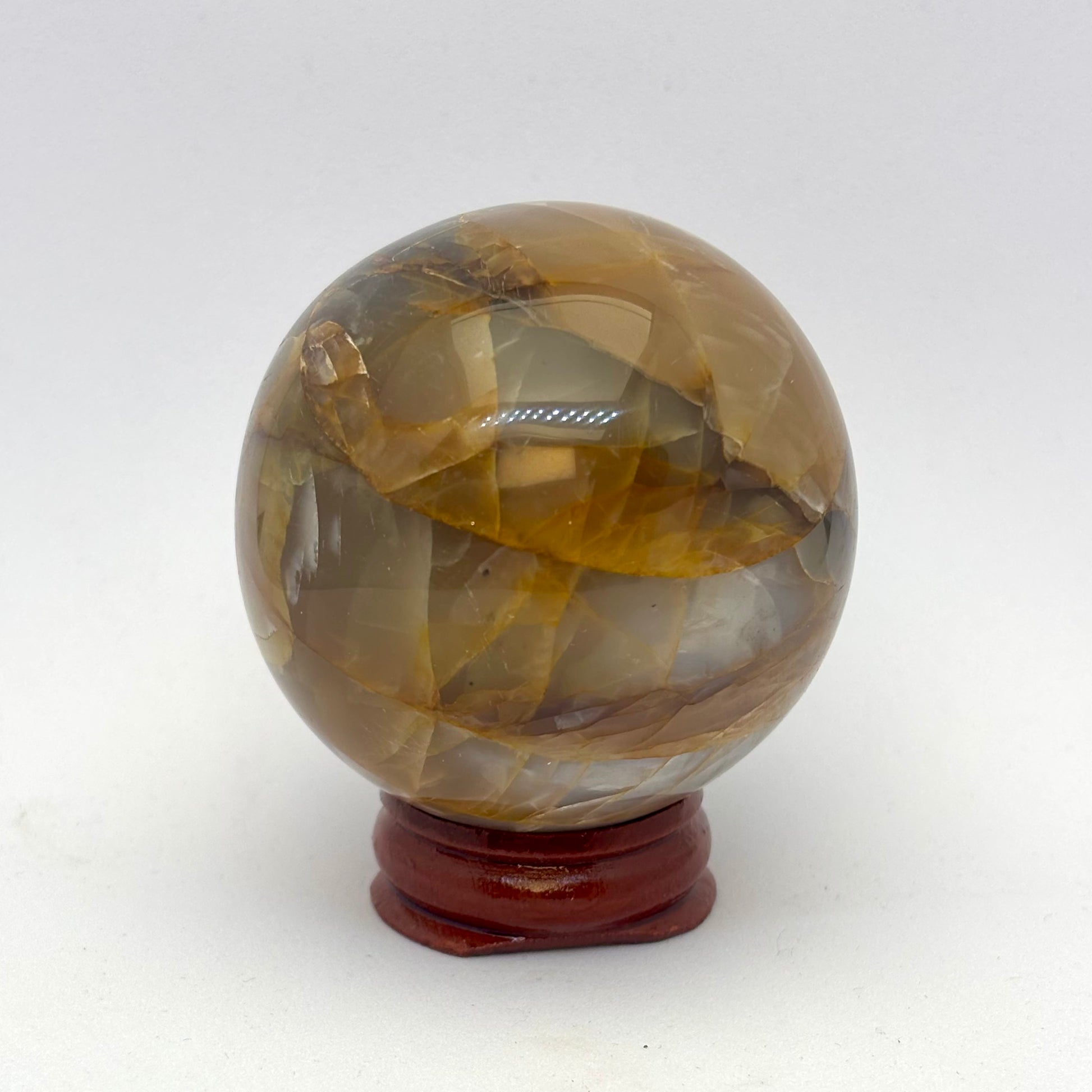 Her er en moonstone/ månesten kugle. Meget smuk med flotte genskin