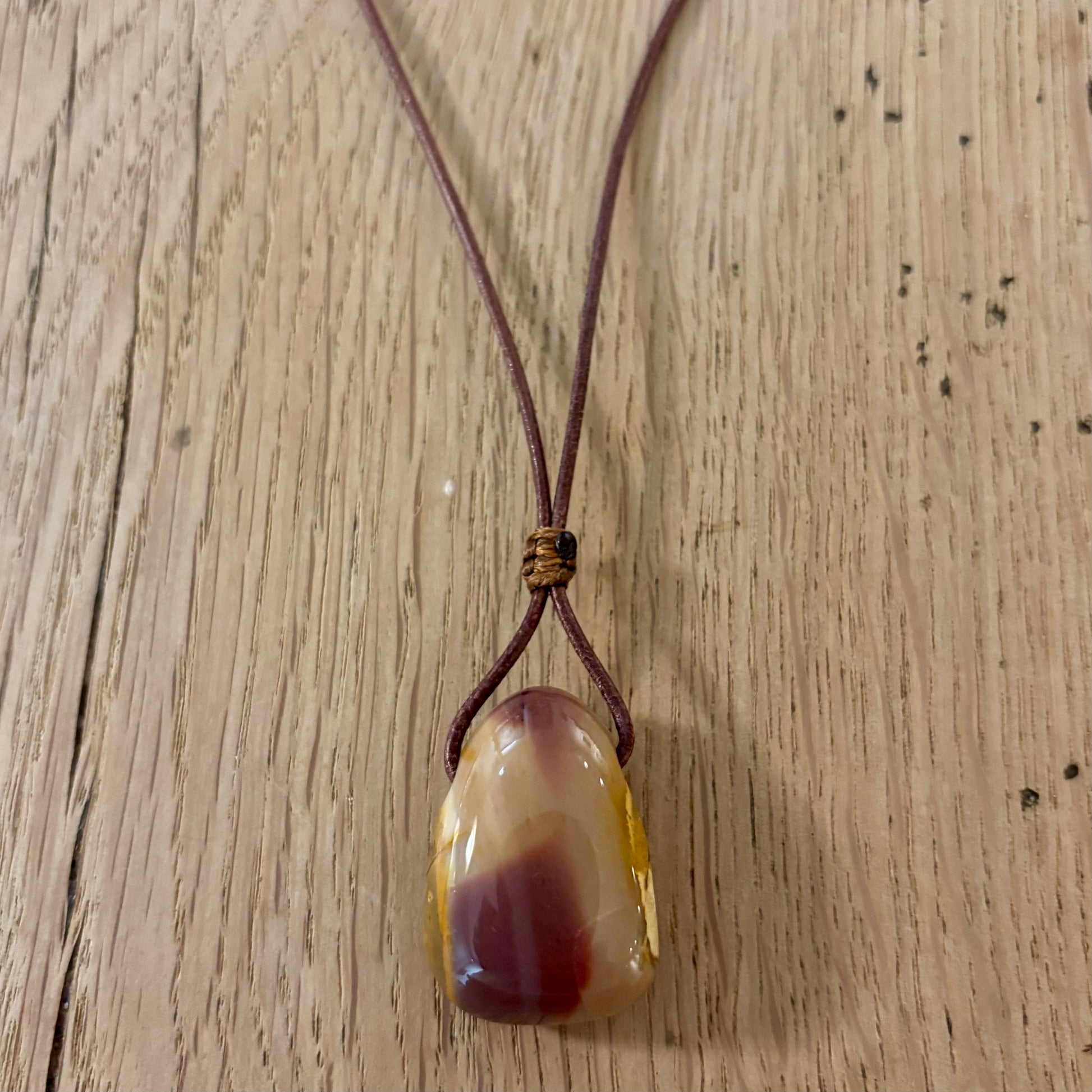 Her en ret sød, enkel og varm mookait halskæde. Mookait er sådan en lækker sten. Det er en Jaspis med kvaliteterne derfra. Den opfører sig mangefarvet lidt i stil med polychrome jaspis. Der er til tider sprækker i, og de klæder stenen. Det er ikke et tegn på at den er ved at gå i stykker, men et karaktertræk.