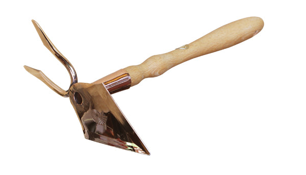 Dette værktøj er meget velegnet til stenet eller mere sprød jord. Udført i en massiv kobberlegering med et håndtag lavet af bøg.