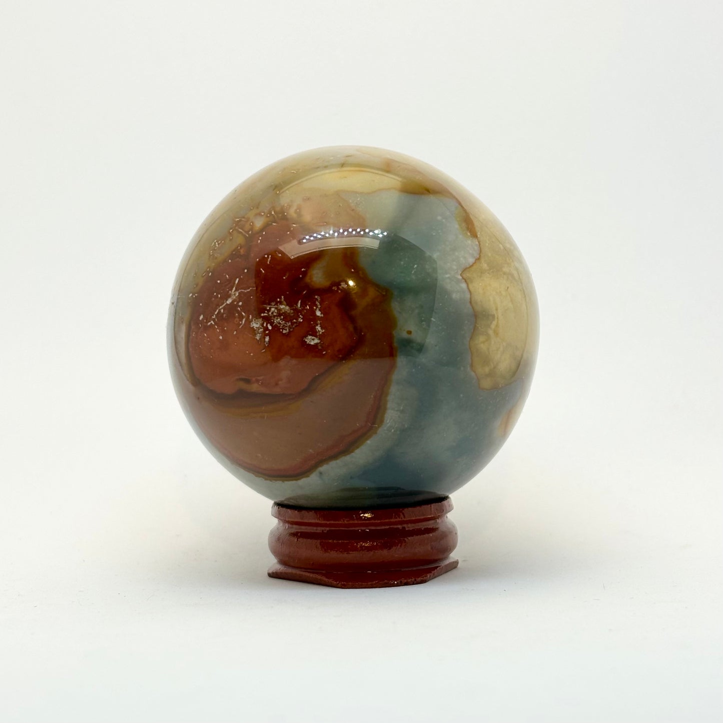 Her er en Polychrom jaspis, ørken jaspis eller en mangefarvet jaspis. Meget smuk kugle