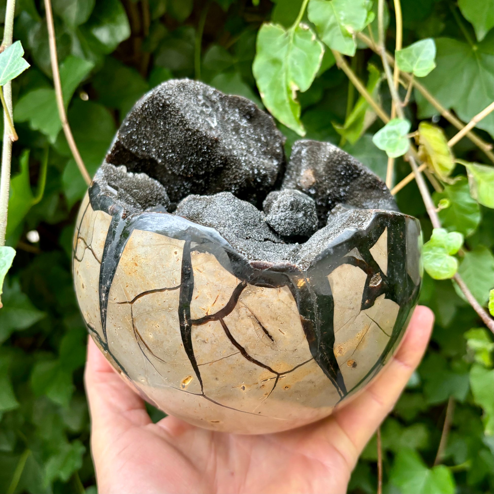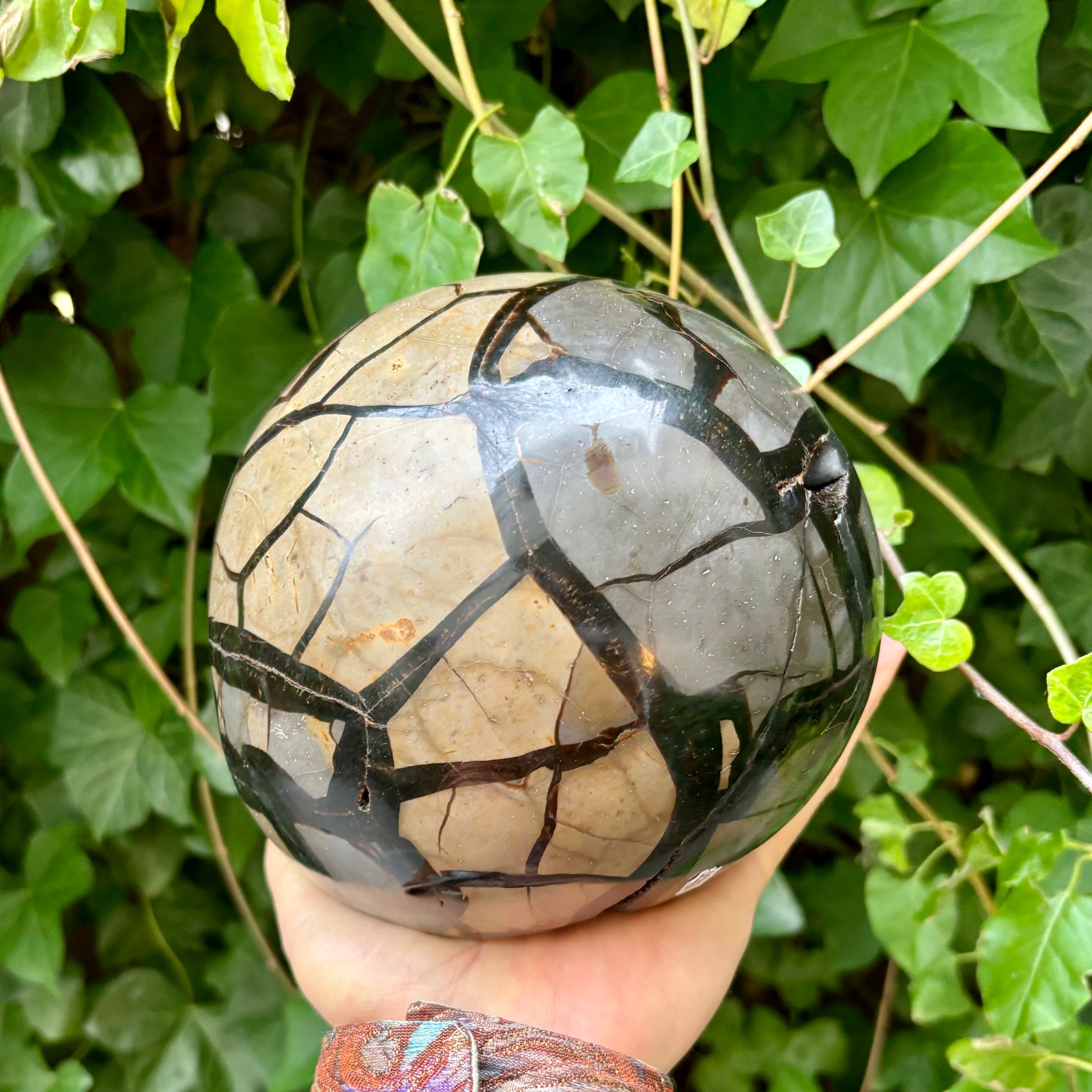 Septarie er aragonit og calcit i en flot og dramatisk blanding. Drageæg som dette er poleret og igenne det er formen og og den blanke overflade opstået.