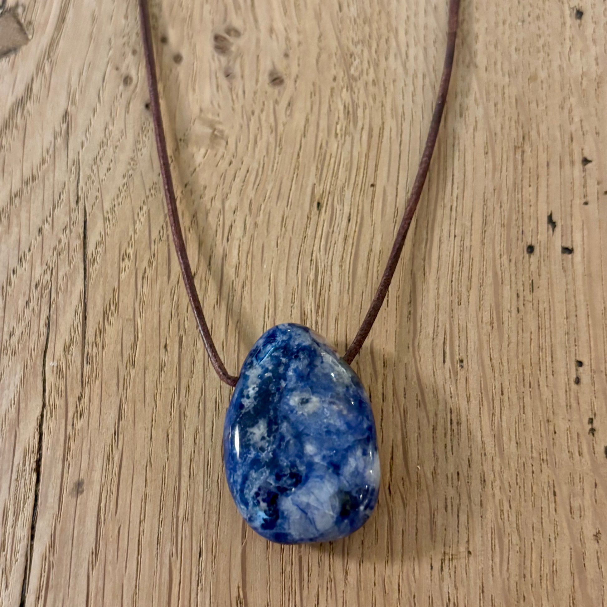 Smuk blå Sodalit halskæde med skyer.