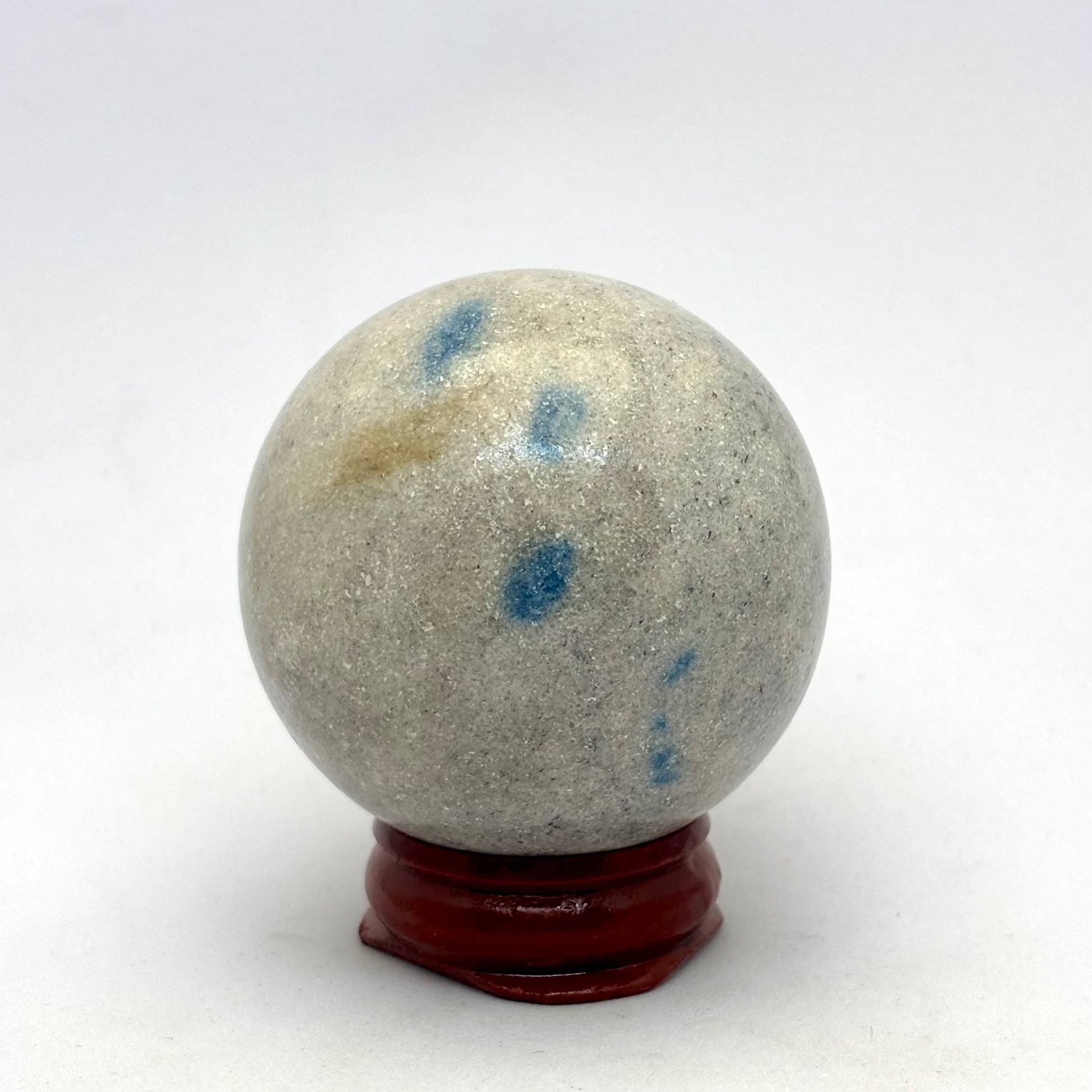 Her er en smuk spinel i kvarts kugle. Det er ikke så ofte at denne type materiale kommer til syne. Det blå er spinel. Det hvid/grå er kvarts. Den er fra Madagaskar