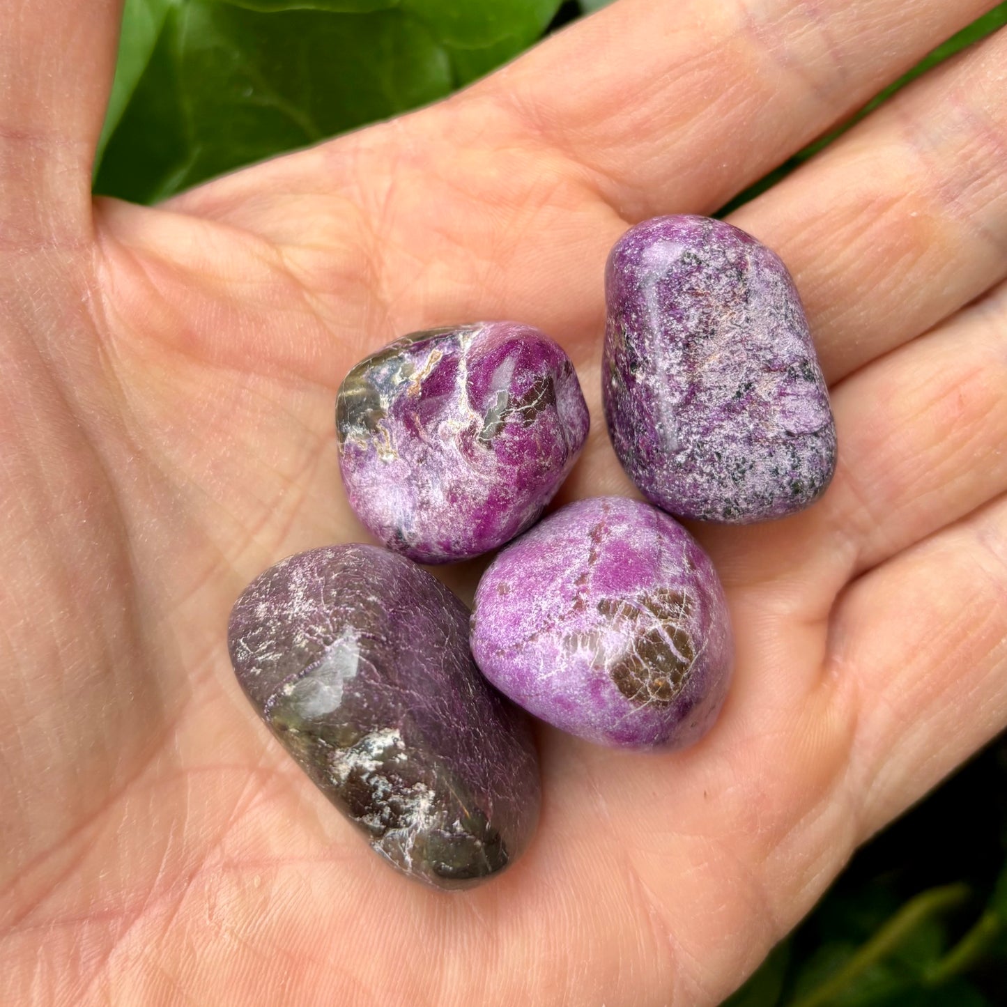 Stichtit er en sjælden, lilla til lavendelfarvet sten, der ofte findes sammen med grøn serpentin, hvilket skaber en smuk kontrast. Den består primært af magnesiumhydroxid og krom, hvilket giver dens karakteristiske farve. Stichtit symboliserer medfølelse, følelsesmæssig heling og spirituel vækst.