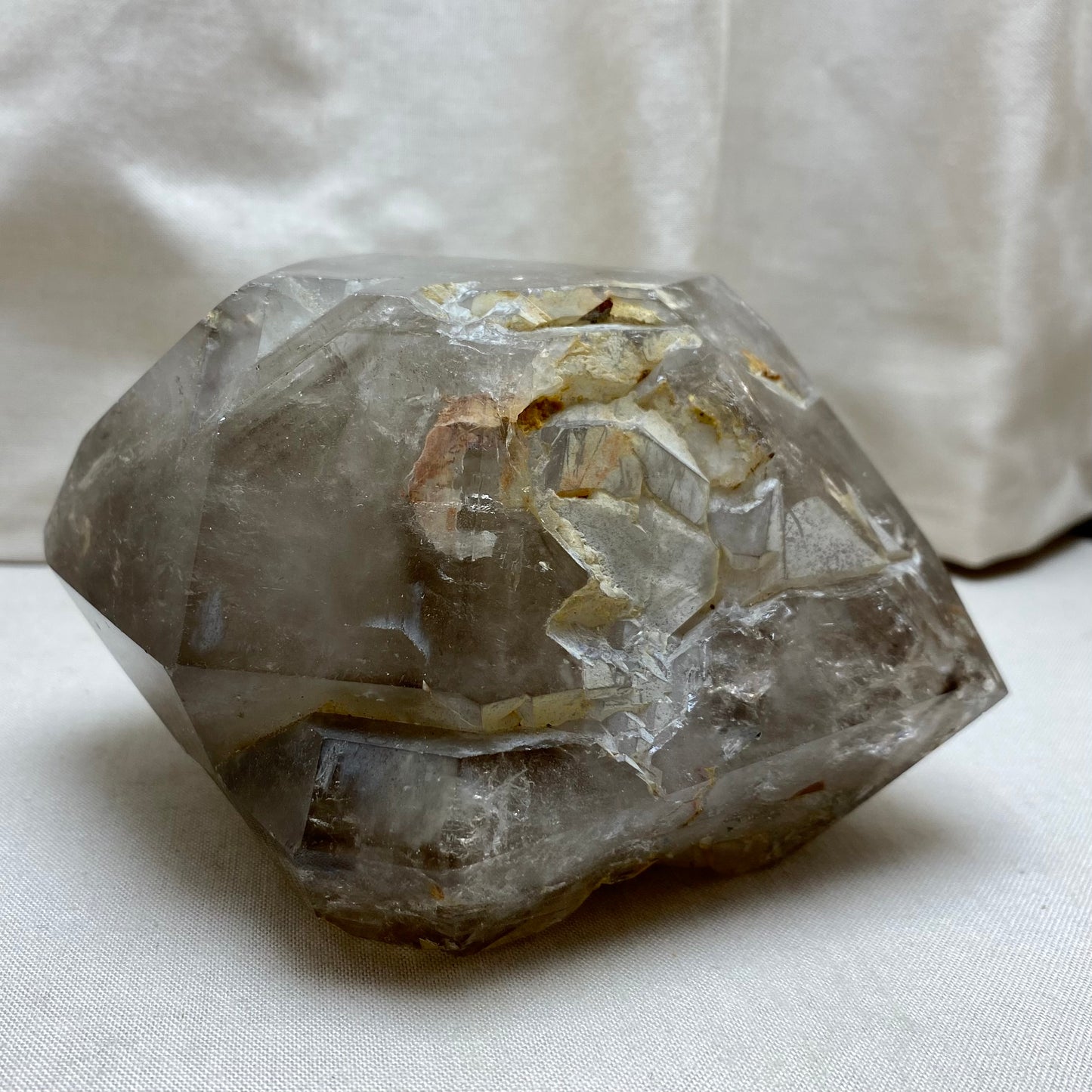 Køb stor dobbelt røgkvarts spids 12 cm fra namibia i den lille krystalbutik i Valby
