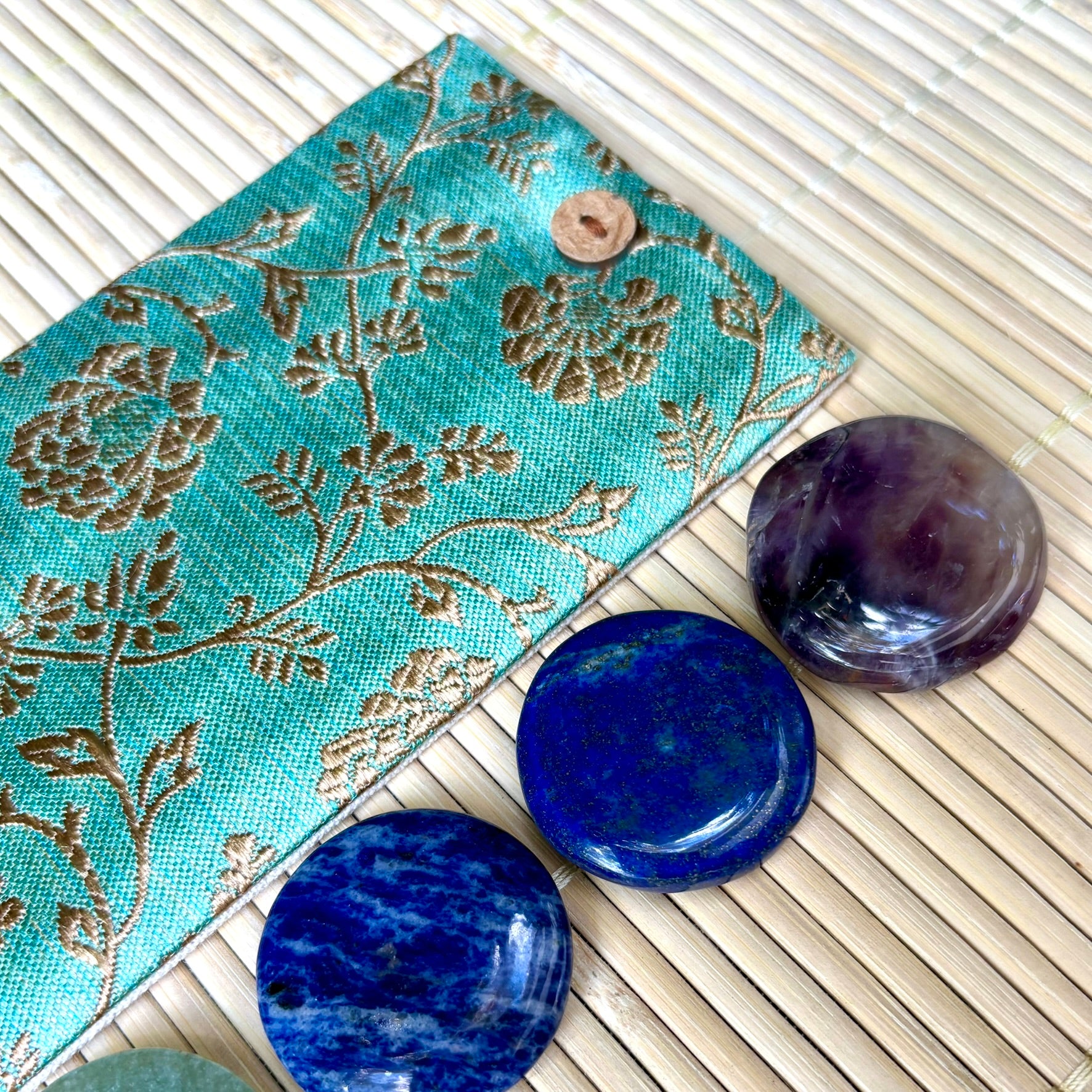 Intention Wristband leveres i en god æske. Tilkøber du en krystal, lægges den også i æsken. Køber du hele chakra sættet, leveres det i en bomuldspose ved siden af æsken.