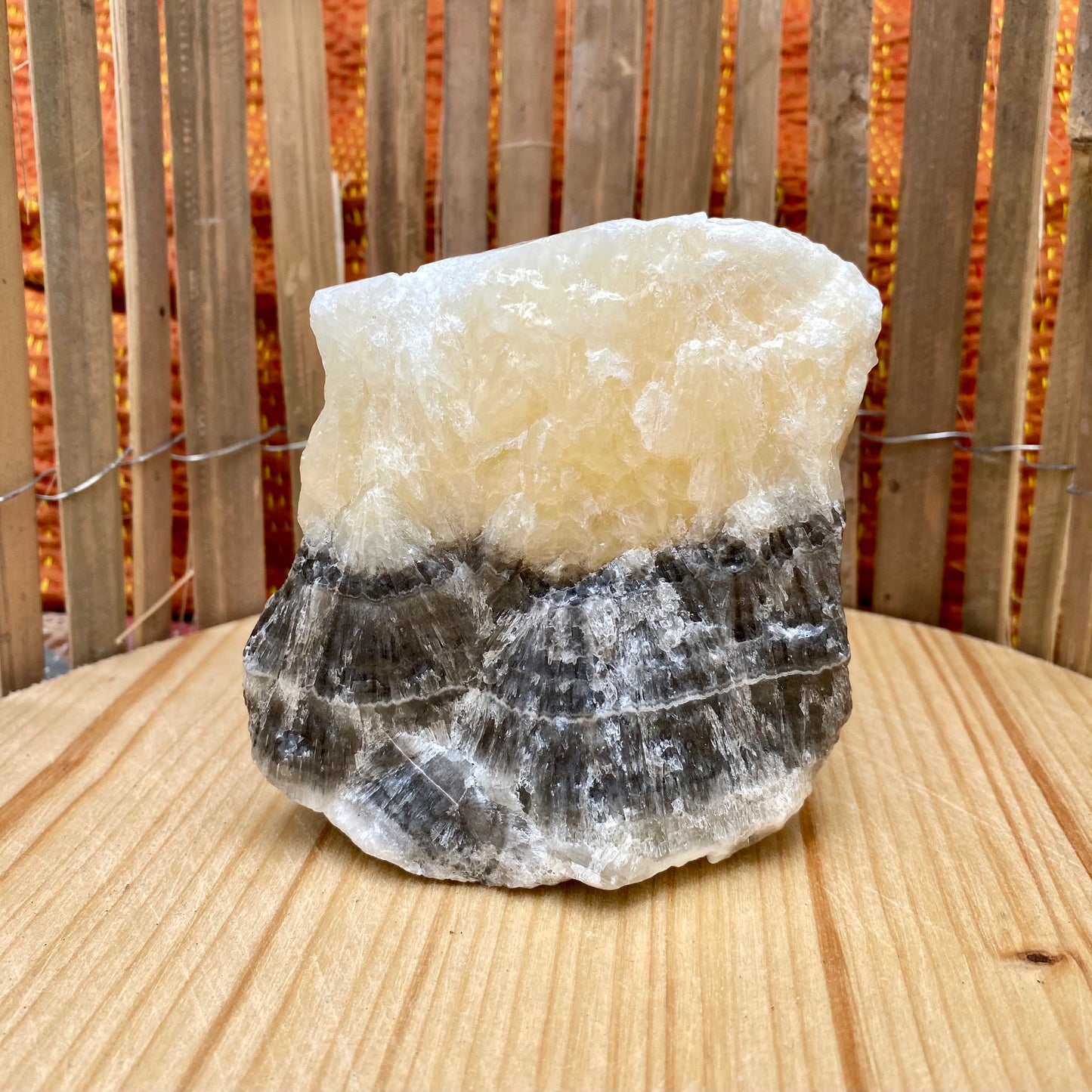 Zebra calcit er unikt med sine skiftende striber af creme hvid og grå/sort næsten sølv. Blankt og smukt i sin naturlighed.