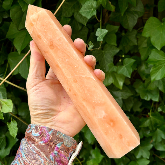 Calcit er en smuk og alsidig krystal, der findes i et væld af farver, såsom klar, gul, grøn, orange, blå og pink. Den er kendt for sin glasagtige overflade og sin evne til at bryde lys i forskellige retninger, hvilket skaber en fascinerende dobbeltbrydningseffekt. Calcit forbindes ofte med klarhed, energi og transformation.