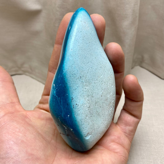 Chrysocolla er en sart sten og bør renses forsigtigt. Brug en tør eller let fugtig klud til at fjerne støv og snavs. For energirensning kan du placere den i måneskin natten over, bruge røgelse som salvie eller palo santo, eller lade den hvile på en selenitplade. Undgå vand og kemikalier, da disse kan beskadige stenen over tid.
