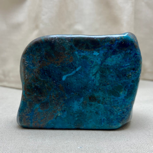 Shattuckit er en sjælden og smuk sten, der ofte har intense blå og turkise nuancer, kombineret med mørkere toner af sort eller brunt. Den er en sekundær kobbermineral, der dannes i oxidationszoner i kobberaflejringer. Shattuckit symboliserer kommunikation, intuition og spirituel indsigt og er populær blandt energiarbejdere og krystallelskere for dens dybe, beroligende energi.